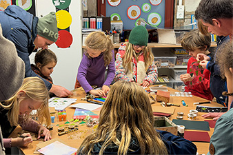 Im Dezember verbrachten wir einen unserer Draußentage in Darmstadt beim Science Pop-up. Mit dem Zug fuhren wir von Ladenburg nach Darmstadt. Dort angekommen konnten die Kinder spannende Einblicke in Teilchenforschung und Beschleunigertechnik erhalten – darunter virtuelle Führungen, Workshops, Mitmachstationen und ein VR-Erlebnis. Das Pop-up-Projekt ist Teil des städtischen Innenstadtprogramms „Stadtpunkte“. Ziel ist es, Wissenschaft erlebbar zu machen und gleichzeitig zur Belebung der Innenstadt beizutragen. Die Kinder hatten viel Freude beim Entdecken der Stationen.